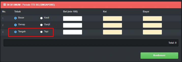Misalnya dibeli posisi TENGAH dengan nilai 100rb.